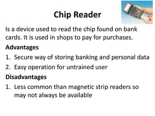 Barcode reader chip and. See answer 1 Best Answer. What are advantages and disadvantages of chip readers and PIN pads.